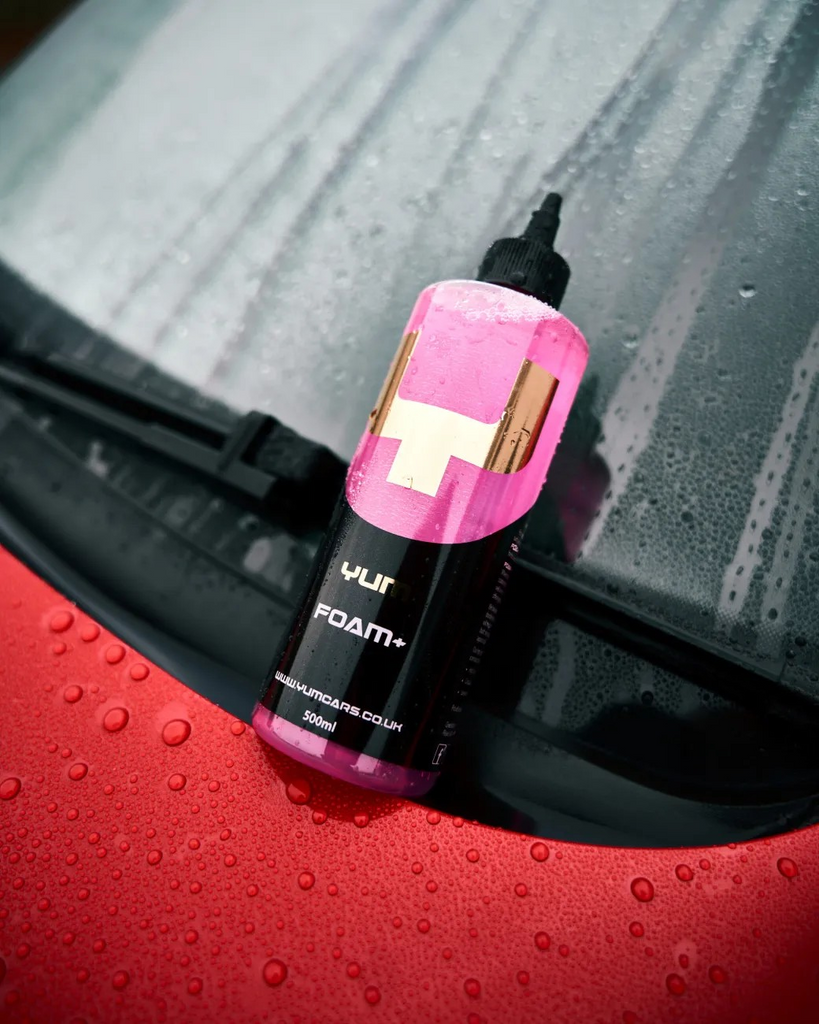 Yum Foam+ är särskilt välanpassad för användning med foam cannon men fungerar lika bra i pumpspruta. Den räcker till flera tvättar och förenklar efterföljande steg – t.ex. polering, vaxning eller coating – genom att preliminärt skydda ytan och öka glansen.